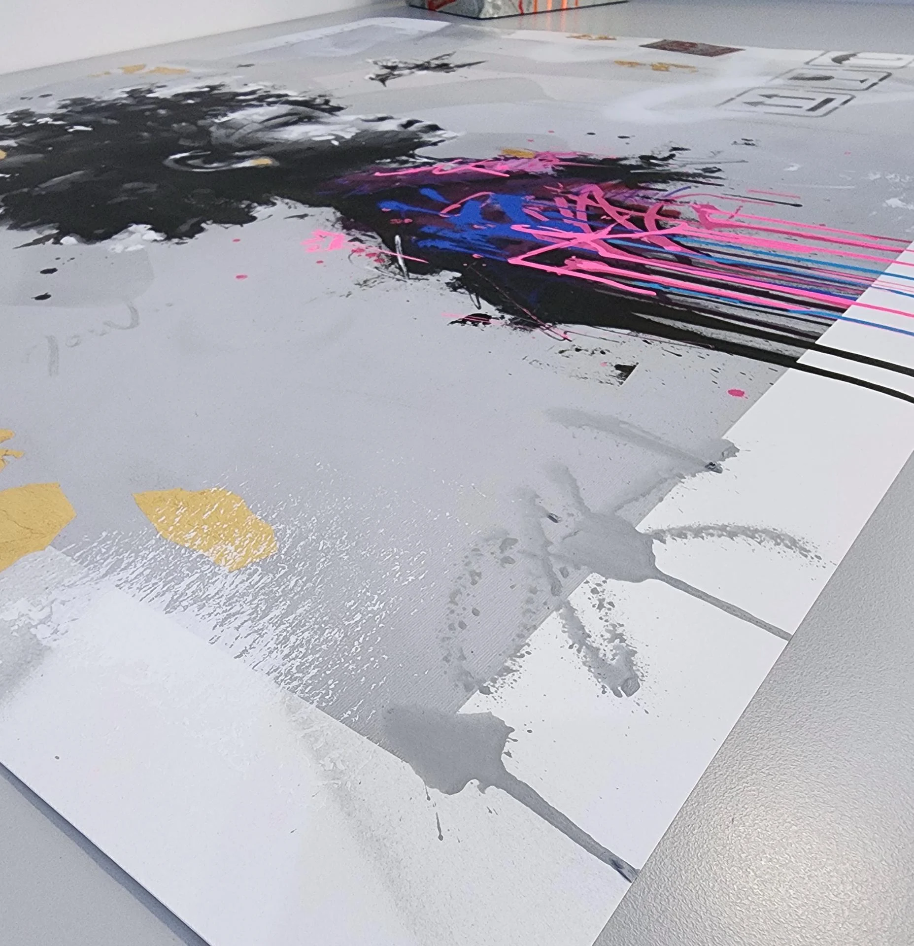 Acrylique / Aérosol / Feuille d'or
